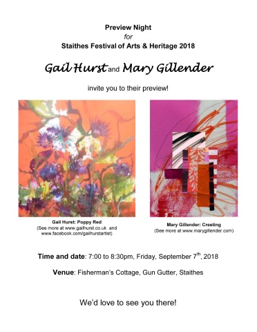 I will be taking part in the Staithes Festival of Arts and Heritage 2018. Please visit me in my usual venue Fisherman's Cottage on Gungutter where my friend/neighbour Mary Gillender will be pleased to see you. More information about Mary can be found at www.marygillender.com